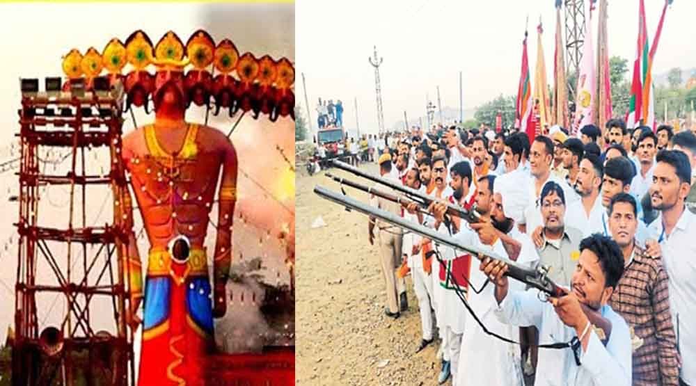 दशहरे के मौके पर जहां देशभर में रावण के पुतलों का दहन किया जाता है वहीं राजस्थान के झुंझुनू जिले के उदयपुरवाटी कस्बे में एक अनोखी परंपरा के चलते रावण के पुतले के साथ-साथ उसकी सेना पर बंदूकों से फायरिंग की जाती है। यह दादूपंथी समाज की 400 साल पुरानी परंपरा है लेकिन इस बार पुलिस ने नए कानूनी प्रावधान के तहत इसकी अनुमति नहीं दी है, इसलिए इस बार धनुष-बाण से ही रावण के पुतले का दहन होगा।