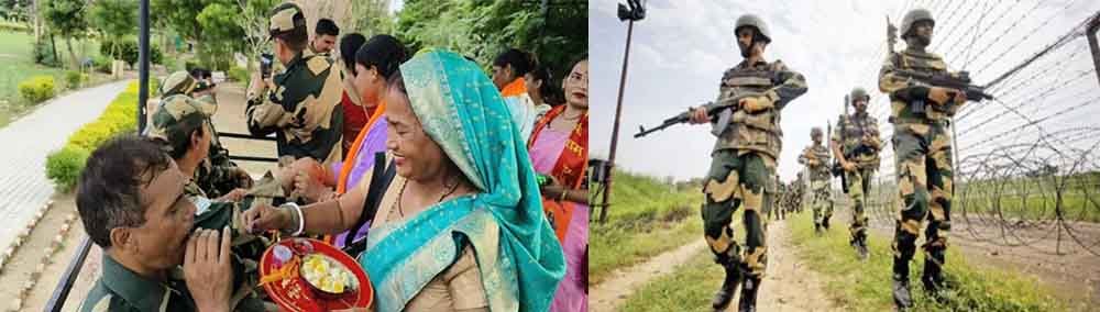राजस्थान-श्रीगंगा नगर में पाकिस्तान बॉर्डर पर बीएसएफ जवानों को बांधे रक्षा सूत्र