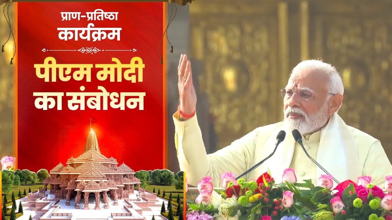 एकत्र जनसमूह को संबोधित करते हुए प्रधानमंत्री ने कहा कि सदियों के बाद आखिरकार हमारे राम आ गए हैं। प्रधानमंत्री मोदी ने इस अवसर पर नागरिकों को बधाई देते हुए कहा, “सदियों के धैर्य, अनगिनत बलिदान, त्याग और तपस्या के बाद, हमारे भगवान राम यहां हैं।” प्रधानमंत्री ने कहा कि ‘गर्भ गृह’ (आंतरिक गर्भगृह) के अंदर ईश्वरीय चेतना का अनुभव शब्दों में नहीं किया जा सकता है और उनका शरीर ऊर्जा से स्पंदित है और मन प्राण प्रतिष्ठा के क्षण के लिए समर्पित है। “हमारे राम लला अब तंबू में नहीं रहेंगे। यह दिव्य मंदिर अब उनका घर होगा”, प्रधानमंत्री ने विश्वास और श्रद्धा व्यक्त करते हुए कहा कि आज की घटनाओं को देश और दुनिया भर के राम भक्तों द्वारा अनुभव किया जा सकता है। प्रधानमंत्री मोदी ने कहा, “यह क्षण अलौकिक और पवित्र है, वातावरण, पर्यावरण और ऊर्जा हम पर भगवान राम के आशीर्वाद का प्रतीक है।” उन्होंने रेखांकित किया कि 22 जनवरी की सुबह का सूरज अपने साथ एक नई आभा लेकर आया है। प्रधानमंत्री ने इस बात पर जोर देते हुए कहा कि 22 जनवरी, 2024 केवल कैलेंडर की एक तारीख नहीं है, यह एक नए ‘काल चक्र’ का उद्गम है।” राम मंदिर के भूमि पूजन के बाद से प्रतिदिन पूरे देश में उमंग और उत्साह बढ़ता ही जा रहा था। निर्माण कार्य देख, देशवासियों में हर दिन एक नया विश्वास पैदा हो रहा था और विकास कार्यों की प्रगति से नागरिकों में नई ऊर्जा का संचार हुआ। आज हमें सदियों के उस धैर्य की धरोहर मिली है, आज हमें श्रीराम का मंदिर मिला है। प्रधानमंत्री ने कहा, ”आज हमें सदियों के धैर्य की विरासत मिली है, आज हमें श्री राम का मंदिर मिला है।” उन्होंने जोर देकर कहा कि गुलामी की मानसिकता को तोड़कर उठ खड़ा हो रहा राष्ट्र, अतीत के हर दंश से हौसला लेकर, ऐसे ही नव इतिहास का सृजन करता है। प्रधानमंत्री मोदी ने कहा कि आज की तारीख की चर्चा आज से एक हजार साल बाद की जाएगी और यह भगवान राम का आशीर्वाद है कि हम इस महत्वपूर्ण अवसर के साक्षी हैं। प्रधानमंत्री ने कहा, “दिन, दिशाएं, आकाश और हर चीज आज दिव्यता से भरी हुई है”, उन्होंने कहा कि यह कोई ये समय, सामान्य समय नहीं है। ये काल के चक्र पर सर्वकालिक स्याही से अंकित हो रहीं अमिट स्मृति रेखाएँ हैं।