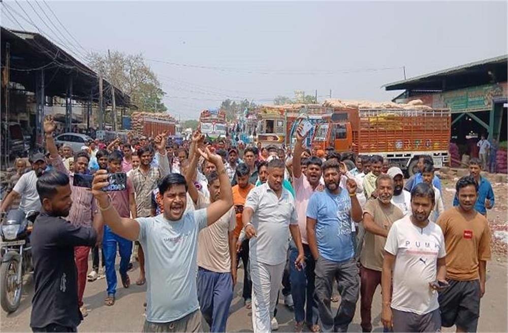 समूह प्रदर्शनकारियों ने मंडी में पैदल रोष मार्चा निकाला और डी.एम.ओ. को मांग पत्र देने के लिए डीएमओ ऑफिस पहुंच गए। मामला तब भड़क गया जब डी.एम.ओ. समय देकर खुद वहां मौजूद नहीं थे जिसके बाद आढ़ती आफिस के अंदर ही नारेबाजी शुरू कर दी। बाद में पता लगा कि मार्किट कमेटी के चेयरमैन और सैक्रेटरी भी मौजूद नहीं है जिसके चलते गुस्से में आए आढ़तियों ने ठेकेदार के साथ साथ मार्कीट कमेटी के अधिकारियों के खिलाफ नारेबाजी शुरू कर दी।