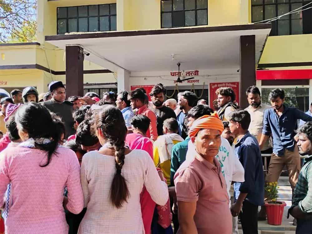 यूपी के आजमगढ़ से एक चौंकाने वाला मामला सामने आया है। जहां तरवां थाने के लॉकअप में रविवार रात दलित युवक का शव फंदे से लटकता मिला। उसने पाजामा के नाड़े से शौचालय की खिड़की के सहारे फांसी लगाई थी। सोमवार सुबह घटना की जानकारी होने के बाद गुस्साए ग्रामीणों ने थाने का घेराव करने के साथ ही खरिहानी-मेहनाजपुर मार्ग पर जाम लगा दिया। साथ ही तोड़फोड़ किया। भीड़ को तितर-बितर करने के लिए पुलिस को लाठी चार्ज करनी पड़ी। परिजनों ने पुलिस पर रुपये मांगने और हत्या कर शव लटकाने का आरोप लगाया है। जानकारी मिलते ही एसपी सिटी पांच थानों की फोर्स के साथ मौके पर पहुंचे। एसपी ने इस मामले में तरवां थानाध्यक्ष, एक सब इंस्पेक्टर समेत तीन पुलिसकर्मियों को निलंबित कर दिया है। घटना को लेकर जबरदस्त तनाव है।
