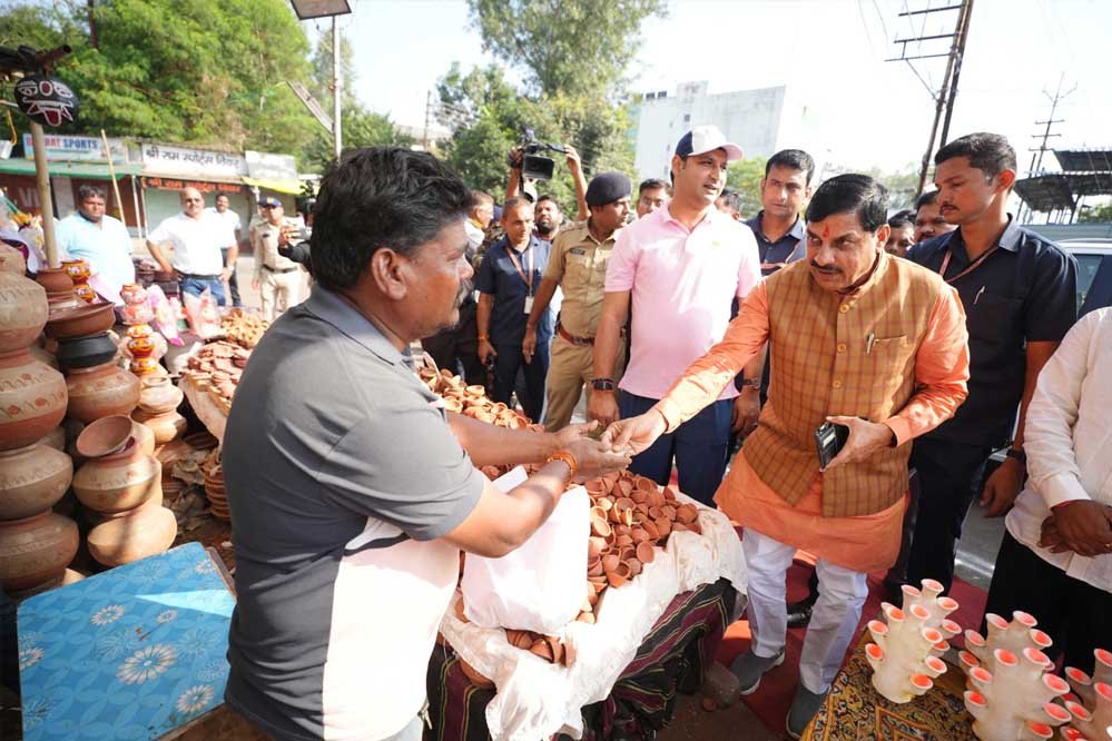 मुख्यमंत्री डॉ. मोहन यादव ने “वोकल फॉर लोकल” को बढ़ावा देते हुए, धनतेरस पर्व पर टी.टी. नगर स्टेडियम के पास मिट्टी के दीपक की दुकान लगाने वाले कारीगर सुनील व लकी प्रजापति तथा बबलू प्रजापति से दीये ख़रीदे और उनकी कुशल क्षेम पूछी। सुनील, लकी व बबलू प्रजापति ने त्यौहारों के दौरान पथ विक्रेताओं को बाजार छूट से मुक्ति दिलाने के लिए मुख्यमंत्री डॉ. यादव का आभार माना है।