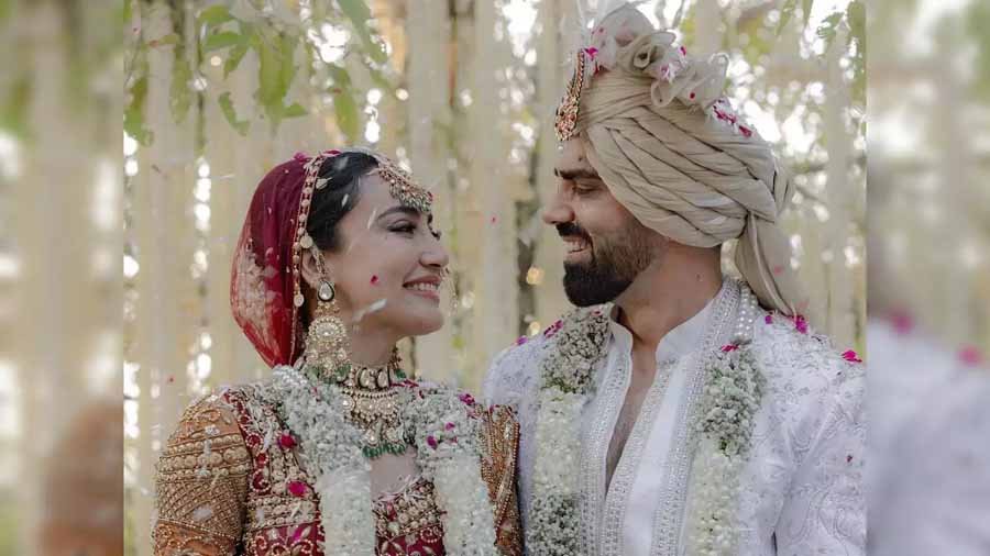 उत्तराखंड के जिम कॉर्बेट स्थित आहाना रिज़ॉर्ट में सुरिभ और सुमित की शादी हुयी।सुरभि ज्योति ने सुमित सूरी के साथ पारंपरिक हिंदू रीति-रिवाजों से शादी की। सुरभि ज्योति ने इंस्टाग्राम पर अपनी शादी की तस्वीरों को शेयर किया है।सोशल मीडिया पर सामने आई फोटोज में देख सकते हैं कि सुरभि ने ब्राइडल के लिए लाल और पीले रंग के कॉम्बिनेशन वाला लहंगा पहना था। हाथ में कलीरे, लाल चूड़ा, बड़ा मांग टीका, हैवी नेकलेस और नथ में एक्ट्रेस दुल्हन के जोड़े में बेहद ही प्यारी लगीं। वहीं, दूल्हे के जोड़े में सुमित ने ऑफ व्हाइट कलर की शेरवानी पहनीं थी। फोटोज को शेयर करते हुए सुरभि ने कैप्शन में लिखा है,शुभ विवाह। 27-10-2024।