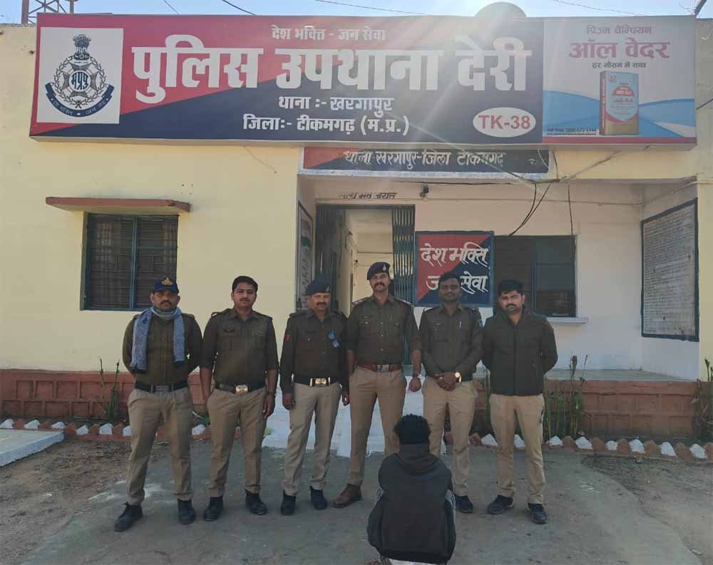 इसी तारतम्य में  चौकी देरी थाना खरगापुर पुलिस द्वारा दिनांक 13.12.24 को मुखबिर सूचना पर  दबिश देकर न्यायलय टीकमगढ़ के प्र.क्र. 80/21 धारा  392 ता.हि. में फरार स्थाई वारंटी एवं प्र. क्र. 96/18 धारा 363,366 ता हि 5/6 पॉस्को एक्ट में फरार 10,000/- के ईनामी स्थाई वारंटी संजय उर्फ संजू पिता लालाराम अहिरवार उम्र 26 साल निवासी ग्राम कुड़ीला  थाना कुड़ीला  को गिरफ्तार कर  माननीय न्यायालय  पेश किया गया।