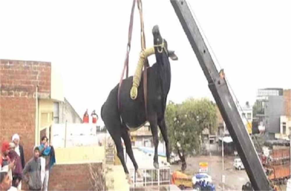 सांड को इस प्रकार घर में घुसा देख लोगों की भीड़ इकट्ठा हो गई, लेकिन मजाल किसी की कि कोई उस सांड को टच भी कर सके। सांड को क्रेन के जरिये उतारा गया। इस दौरान वहां मौजूद लोगों ने मोबाइल के कैमरे में पूरी घटना रिकॉर्ड की।