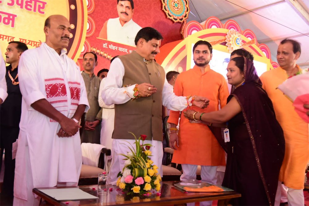 पवित्र सावन के महीने में मुख्यमंत्री डॉ. यादव को राखियाँ बांधने के लिये विमानतल पर ग्वालियर जिले की लाड़ली बहना योजना की 10 हितग्राही बहनें पहुँची थीं। इनमें श्रीमती हेमलता जैन, श्रीमतल कल्पना राठौर, श्रीमती शशि माहौर, श्रीमती शोभा तोमर, श्रीमती पूनम कुशवाह, श्रीमती पूनम परिहार, श्रीमती बबीता श्रीवास्तव, श्रीमती साधना राठौर, श्रीमती कृष्णा बाथम व श्रीमती कुसुम तोमर शामिल थीं।