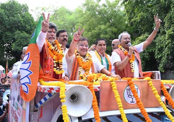 भारतीय जनता पार्टी के उम्मीदवार सुनील सोनी ने रायपुर दक्षिण विधानसभा क्षेत्र के उपचुनाव हेतु शुक्रवार को मुख्यमंत्री विष्णु देव साय, भाजपा प्रदेश अध्यक्ष किरण सिहदेव ,उपमुख्यमंत्री अरुण साव, भाजपा रायपुर सांसद बृजमोहन अग्रवाल सहित हजारों कार्यकतार्ओं व जनता के साथ भाजपा कार्यालय एकात्मक परिसर से रैली निकाल के कलेक्ट्रेट पहुंच कर अपना नामांकन दाखिल किया।