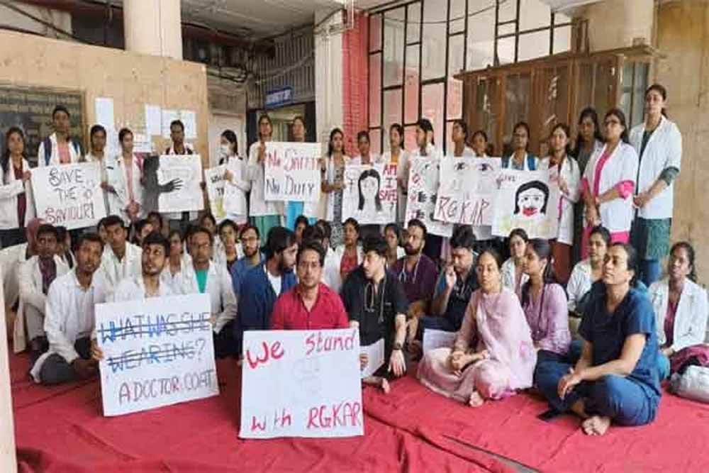 आर.जी. कर मेडिकल कॉलेज की जूनियर रेजिडेंट डॉक्टर के साथ हुए दुष्कर्म और हत्या की घटना के विरोध में कोलकाता के एस्प्लेनेड में जूनियर डॉक्टरों का आमरण अनशन 12वें दिन भी जारी रहा। एस्प्लेनेड स्थित मंच पर भूख हड़ताल पर बैठे जूनियर डॉक्टरों की कुल संख्या अब सात हो गई है। अखिल भारतीय स्वच्छता एवं सार्वजनिक स्वास्थ्य संस्थान की रूमेलिका कुमार और मिदनापुर मेडिकल कॉलेज एंड अस्पताल के स्पंदन चौधरी भी अब इस भूख हड़ताल में शामिल हो गए हैं।