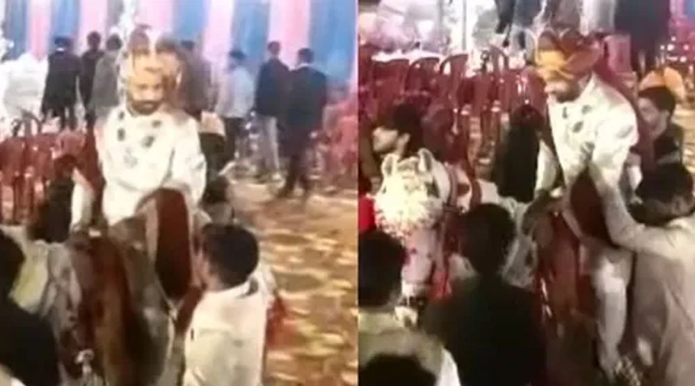 MP में घोड़ी पर बैठते ही झुका, फिर गिरा