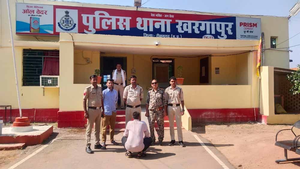अतिरिक्त पुलिस अधीक्षक टीकमगढ सीताराम एवं एस.डी.ओ.पी. टीकमगढ  राहुल कटरे के मार्गदर्शन में थाना खरगापुर पुलिस द्वारा 24 घंटे के अंदर आरोपी रामसिहं पिता नाथूराम यादव उम्र 32 साल निवासी ग्राम पिपरा थाना खरगापुर जिला टीकमगढ को गिरफ्तार किया जाकर माननीय न्यायलय जे. आर. पर पेश किया गया जहां से माननीय न्यायालय द्वारा उक्त आरोपी को जेल भेजा दिया गया है।