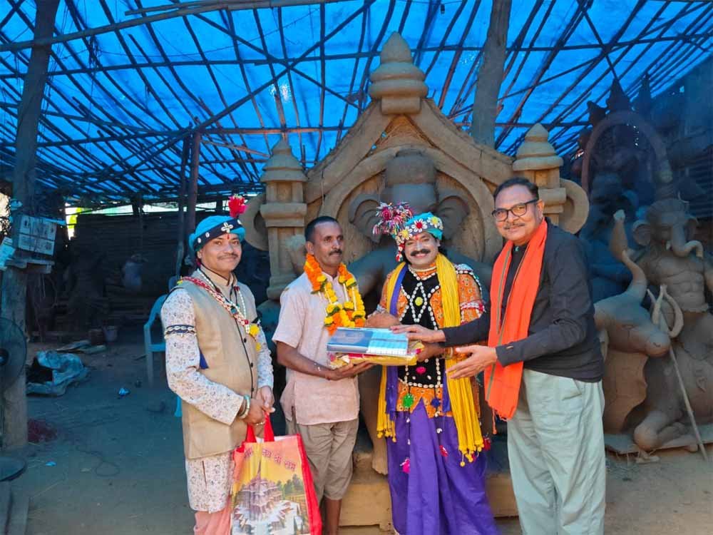 चित्रोत्पला लोक कला परिषद द्वारा,, माता कौशल्या संग तीजा तिहार,, का आयोजन चंदखुरी में 3 सितंबर 2024 से 7 सितंबर 2024 तक किया जा रहा है. आयोजन में अयोध्या धाम से लाई गई पवित्र मिट्टी की मूर्ति बनाकर चंदखुरी में पंडवानी गायिका श्रीमती प्रभा यादव के घर स्थापित किया जाएगा उक्त जानकारी कार्यक्रम के संयोजक राकेश तिवारी द्वारा दिया गया तिवारी द्वारा आगे बताया गया की अयोध्या से लोक कलाकार डॉक्टर पुरुषोत्तम चंद्राकर तथा हेमलाल पटेल द्वारा लाई गई मिट्टी को कल छत्तीसगढ़ के प्रसिद्ध मूर्तिकार पीलू साहू को सोपा गया . साहू द्वारा माता कौशल्या की छत्तीसगढ़ी परिवेश में मूर्ति बनाई जाएगी. जिसमें माता कौशल्या को छत्तीसाढ़ी कोस्टऊंहा लुगरा पहनाई जाएगी. तथा लोक आभूषण सुता, सूर्रा, बहुची,नागमोरी, करघन,आदि से सुसज्जित किया जाएगा.तथा गोद में भगवान राम को बाल रूप में बिठाया जाएगा.मूर्ति को 2 सितंबर2024 को बाजा गाजा के साथ चंदखुरी लेकर जाने का कार्यक्रम रखा गया है.