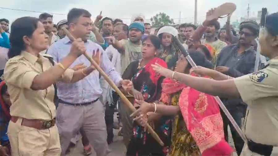 बलरामपुर के कोतवाली थाना में स्वास्थ्यकर्मी गुरुचंद मंडल की मौत के मामले में फिर से बड़ा बवाल हुआ है. आज पुलिस की कड़ी सुरक्षा व्यवस्था में मृतक के डेड बॉडी को अंतिम संस्कार के लिए ले जाया जा रहा था, तभी ग्रामीणों ने जोरदार विरोध जताया और पत्थरबाजी कर दी. इस हिंसा में एडिशनल एसपी निमिशा पांडे को चोट लगी है. वहीं पुलिस के अधिकारी मौके पर उग्र भीड़ को समझाइश देने में जुटे हुए हैं. घटनास्थल पर बड़ी संख्या में पुलिस के जवान तैनात हैं.
