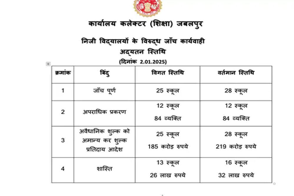 जबलपुर में मनमानी फीस वसूलने वाले तीन स्कूल लौटाएं 33.78 करोड़, प्रशासन ने लगाया दो-दो लाख का जुर्माना