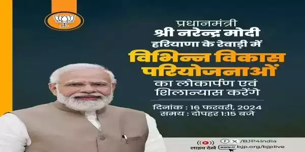 नई दिल्ली,16फरवरी। प्रधानमंत्री नरेंद्र मोदी आज हरियाणा के रेवाड़ी जाने वाले हैं, जहां वह शहरी परिवहन, स्वास्थ्य, रेल और पर्यटन क्षेत्र से संबंधित 9,750 करोड़ रुपये से अधिक की कई विकास परियोजनाओं का उद्घाटन व आधारशिला रखेंगे।