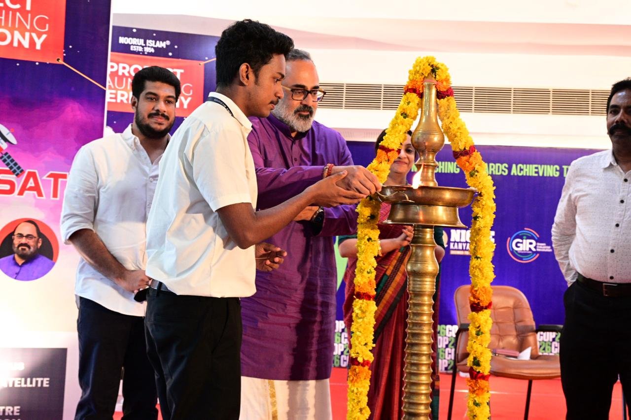 राजीव चंद्रशेखर ने नानाजीसैट उपग्रह का भी अनावरण किया, जो एनआईएमएस इंजीनियरिंग छात्रों की एक उल्लेखनीय उपलब्धि है।
