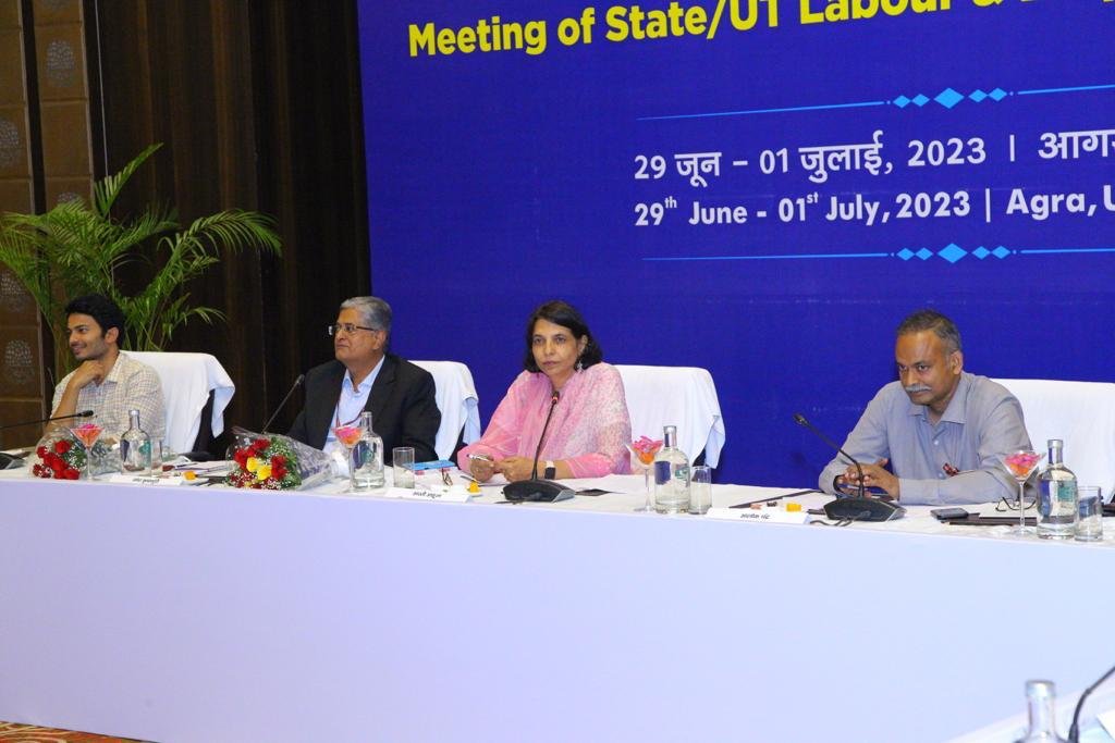 नई दिल्ली, 01जुलाई। भारत सरकार के श्रम और रोजगार मंत्रालय ने 29 जून से 30 जून, 2023 तक आगरा, उत्तर प्रदेश में राज्यों/केंद्र शासित प्रदेशों के श्रम और रोजगार सचिवों के साथ एक बैठक का आयोजन किया। बैठक में 28 राज्यों एवं केंद्र शासित प्रदेशों से अपर मुख्य सचिव/प्रमुख सचिव/सचिव/श्रम/रोजगार आयुक्त ने भाग लिया। भारत सरकार के श्रम एवं रोजगार मंत्रालय की सचिव आरती आहूजा ने बैठक की अध्यक्षता की। श्रम एवं रोजगार मंत्रालय के अपर सचिव रमेश कृष्णमूर्ति, वरिष्ठ श्रम एवं रोजगार सलाहकार आलोक चंद्रा, ईएसआईसी के महानिदेशक डॉ. राजेंद्र कुमार के साथ-साथ श्रम एवं रोजगार मंत्रालय और उसके संगठनों के अन्य अधिकारियों ने भी बैठक में भाग लिया।