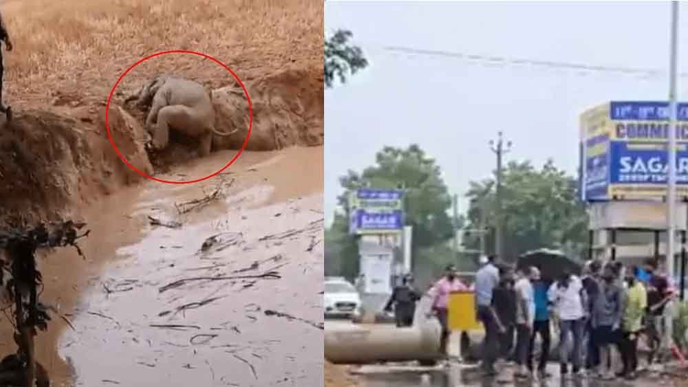 छत्तीसगढ़-रायगढ़ में गड्ढे में घंटों फंसे हाथी के बच्चे को ग्रामीणों ने बचाया