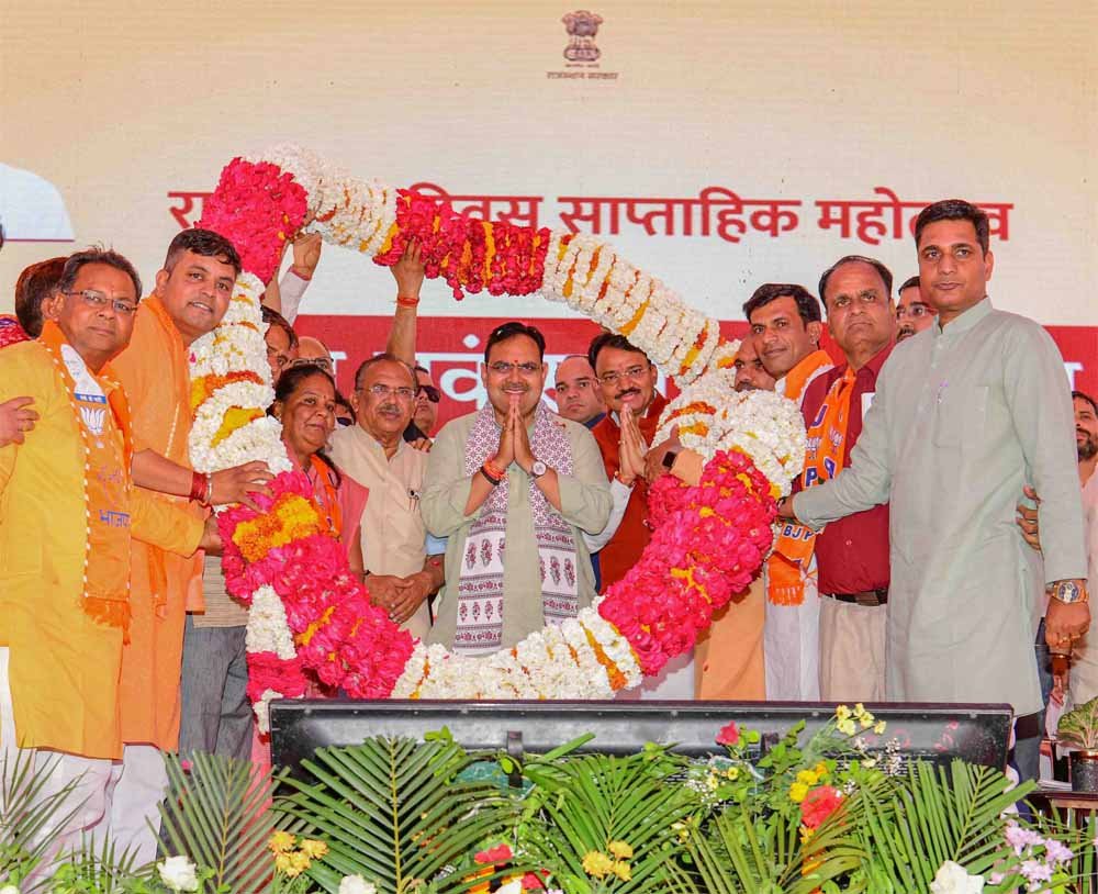 श्री शर्मा ने कहा कि राजस्थान विकास की पटरी पर तेजी से दौड़ रहा है। हमारी सरकार किसान, युवा, मजदूर, महिला के उत्थान के लिए प्रतिबद्धता से काम कर रही है। हमने किसानों को वर्ष 2027 तक दिन में बिजली देने का लक्ष्य रखा है, साथ ही उद्योगों को बढ़ावा देने के लिए भी विभिन्न नीतियां जारी की हैं। उन्होंने कहा कि राज्य सरकार द्वारा जल जीवन मिशन में 12 लाख ग्रामीण परिवारों को नल से जल, पेपर लीक प्रकरणों में गिरफ्तारी, राइजिंग राजस्थान समिट में 35 लाख करोड़ रुपये के एमओयू, राम जल सेतु लिंक परियोजना तथा यमुना जल समझौते जैसे जनता से किए गए प्रत्येक वादे को पूरा किया जा रहा है।