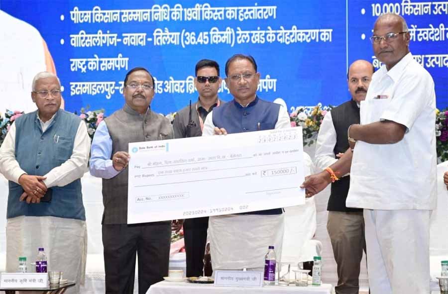 प्रधानमंत्री  नरेंद्र मोदी ने आज बिहार के भागलपुर से पीएम किसान सम्मान निधि योजना की 19वीं किस्त जारी की। इसके तहत देश भर के 9.8 करोड़ किसानों के बैंक खातों में 22,000 करोड़ रुपये अंतरित किए गए। इनमें छत्तीसगढ़ के 25 लाख 95 हजार 832 किसान शामिल हैं। इन किसानों खाते में 599 करोड़ 38 लाख रुपए की सम्मान निधि भेजी गई है। मुख्यमंत्री विष्णु देव साय भी पीएम किसान सम्मान निधि कार्यक्रम से जुड़े। उन्होंने राजधानी रायपुर के इंदिरा गांधी कृषि विश्वविद्यालय परिसर में आयोजित कार्यक्रम में किसान सम्मान निधि प्राप्त करने वाले किसानों को बधाई दी और उन्हें सम्मानित भी किया।