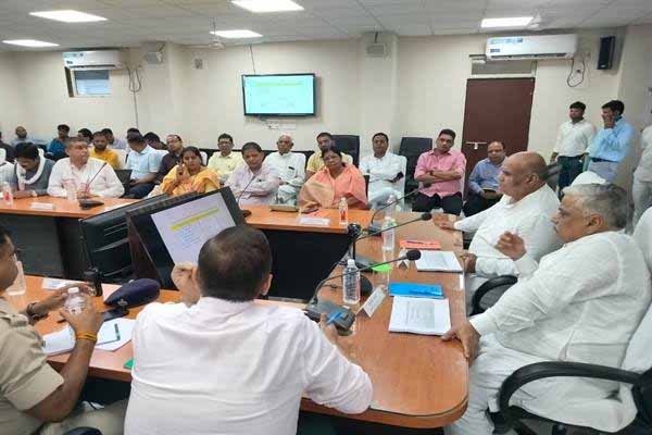 मंत्री श्री वर्मा ने पीएचई विभाग को निर्देश देते हुए कहा कि जितनी भी पानी सप्लाई की लाइनें बंद पड़ी है, उनका निरीक्षण कर तुरंत चालू करवाया जाए एवं मुझे रिपोर्ट दिखाई जाए। भारी बरसात को देखते हुये तालाबों की स्थिति के बारे में जानकारी ली।  मंत्री श्री वर्मा ने कहा कि प्रधानमंत्री  आवास योजना एवं पीएम किसान सम्मान निधि योजना रोटी, कपड़ा, मकान की मूलभूत आवश्यकताओं को पूरा करने वाली हैं। सभी अधिकारी इन योजनाओं का लाभ जनता तक पहुँचायें। हम जनता के लिए हैं, जनता हमारे लिए नहीं। सभी अधिकारी कार्य करने में अपना सम्मान समझे, ईमानदारी से कार्य करें।  ज़िले में हो रहे कार्यों की आगे भी इसी तरह समीक्षा करता रहूँगा।