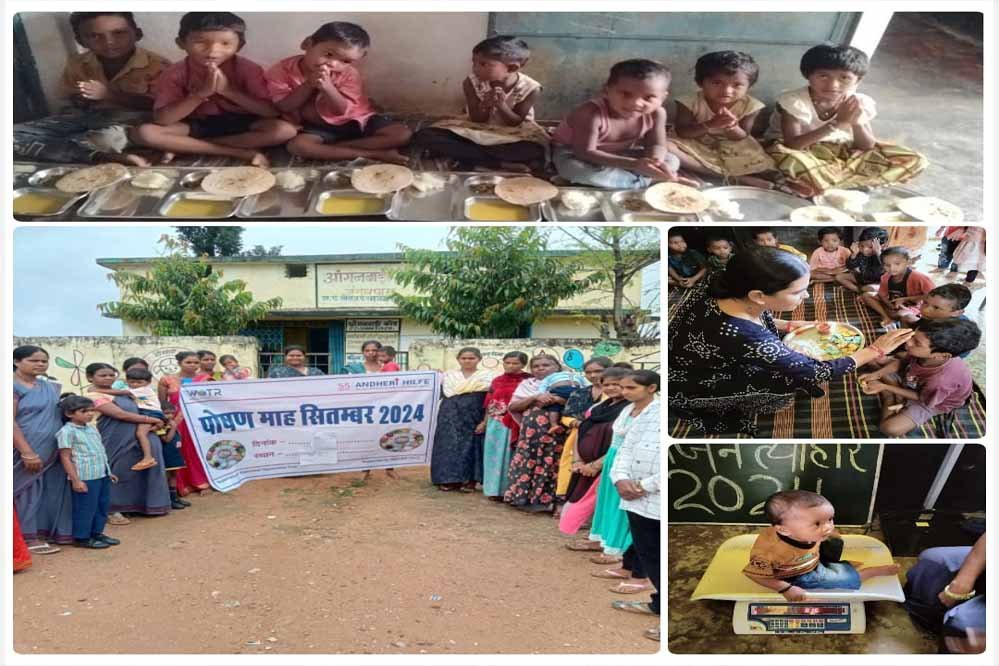 महिला एवं बाल विकास विभाग द्वारा संचालित आंगनबाड़ी केन्द्रों में, बच्चों के पोषण स्तर में सुधार लाने और कुपोषण से होने वाले नुकसान के बारे में गर्भवती माताओं और पालकों को जागरूक किया जा रहा है। केन्द्रों में बच्चों के वजन त्यौहार मनाने, सही पोषण, देश रोशन, और "बेटी बचाओ, बेटी पढ़ाओ" अभियान चलाए जा रहे हैं। इसके साथ ही, पौष्टिक आहार की जानकारी देते हुए माताओं को बच्चों के भोजन में हरी सब्जियां, चावल, दाल, और रोटी को शामिल करने की सलाह दी जा रही है। पोषण के विभिन्न स्रोतों के बारे में विस्तार से जानकारी प्रदान की जा रही है।