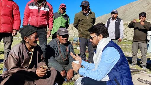 नई दिल्ली, 13जुलाई।केंद्रीय सूचना एवं प्रसारण और युवा एवं खेल मामलों के मंत्री अनुराग सिंह ठाकुर वाइब्रेंट विलेज प्रोग्राम के अन्तर्गत तीन दिवसीय लेह- लद्दाख यात्रा पर हैं। इस दौरान उन्होंने लेह से 211 किलोमीटर दूर, भारत- चीन सीमा से लगे गांव ‘करजोक’ में रात बिताई।