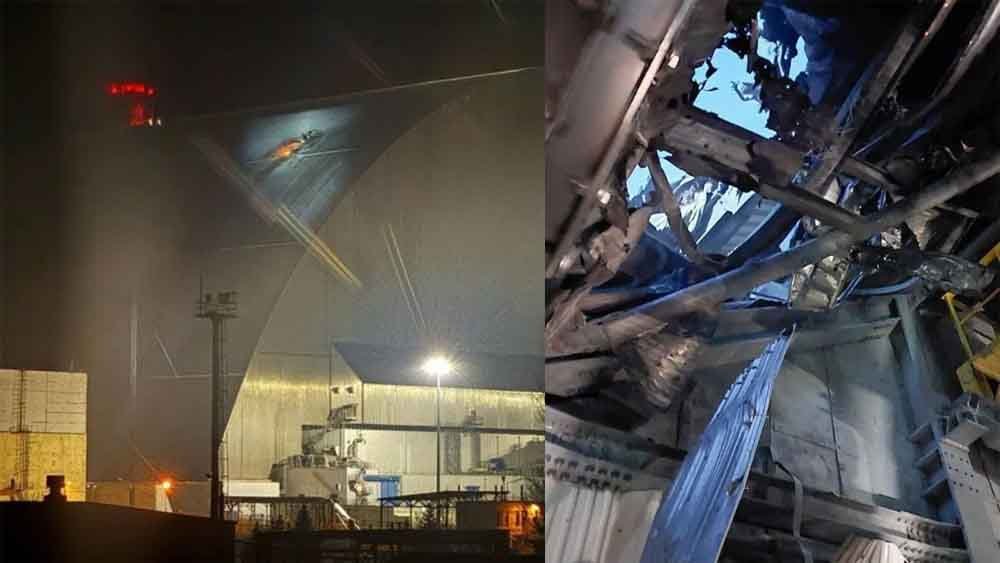 जेलेस्की ने एक्स पर फुटेज पोस्ट की जिसमें एक विस्फोट और कंक्रीट और स्टील से बनी विशाल शील्ड का नुकसान दिखाई दे रहा है। यह शील्ड रेडियोएक्टिव मटेरियल के रिसाव को रोकने के लिए डिजाइन की गई है। यह 275 मीटर (900 फीट) चौड़ी और 108 मीटर (354 फीट) ऊंची है और इसके निर्माण में $1.6 बिलियन की लागत आई है।